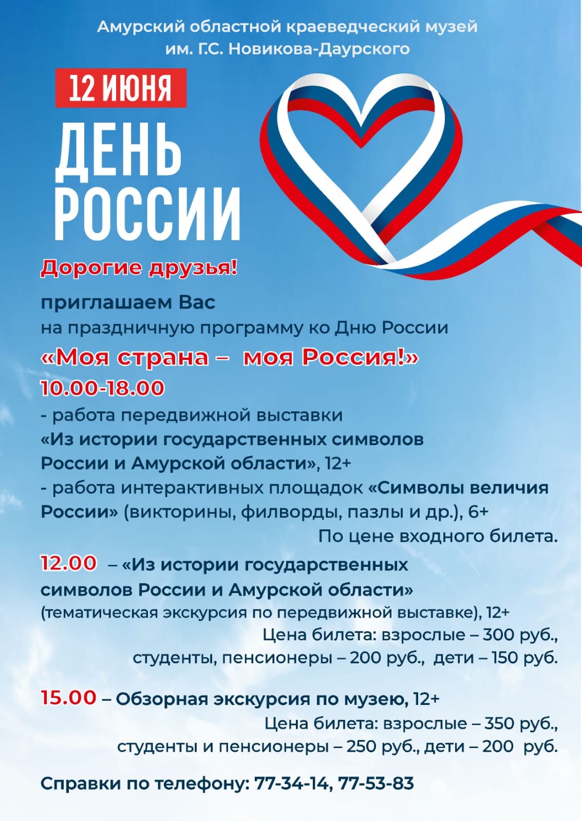 12.00 – «Из истории государственных символов России и Амурской области» (тематическая экскурсия по передвижной выставке), 12+